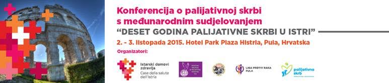 u ime organizacijskog i programskog odbora zahvaljujemo vam na sudjelovanju na konferenciji ''Deset godina palijativne skrbi u Istri'',  održanoj  od 2. do 3. listopada 2015. u Puli. Prema broju sudionika( više od 330 !) te širini tema koje su obrađene bio je to najveći skup o palijativnoj skrbi održan do sada u Hrvatskoj. Zahvaljujemo svima koji su doprinijeli uspjehu konferencije,  a posebno predavačima, voditeljima radionica i predsjedavateljima  sekcija, te volonterima iz Medicinske škole u Puli.
